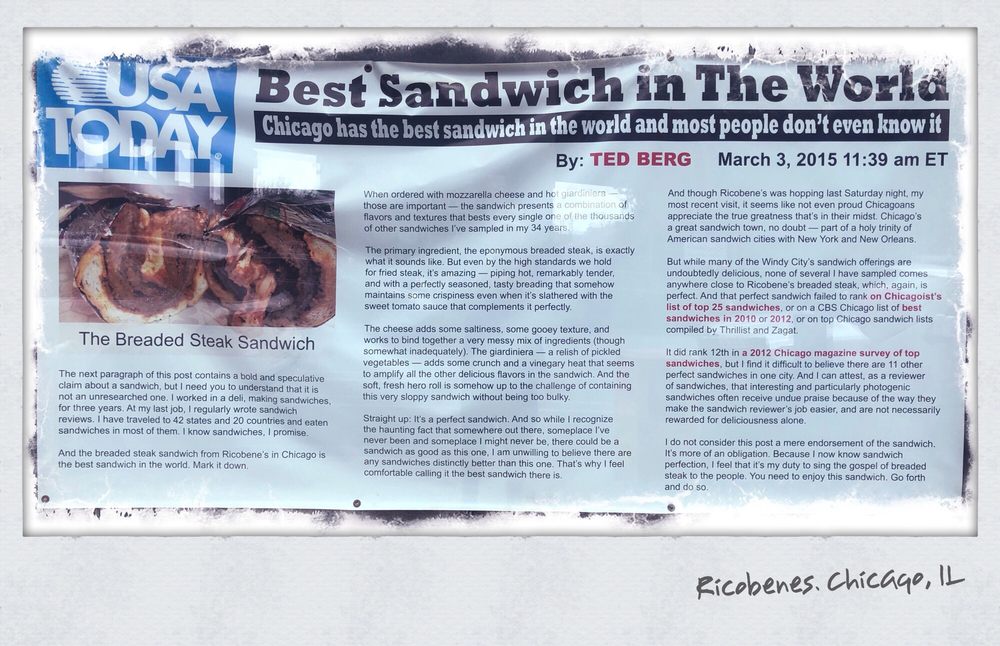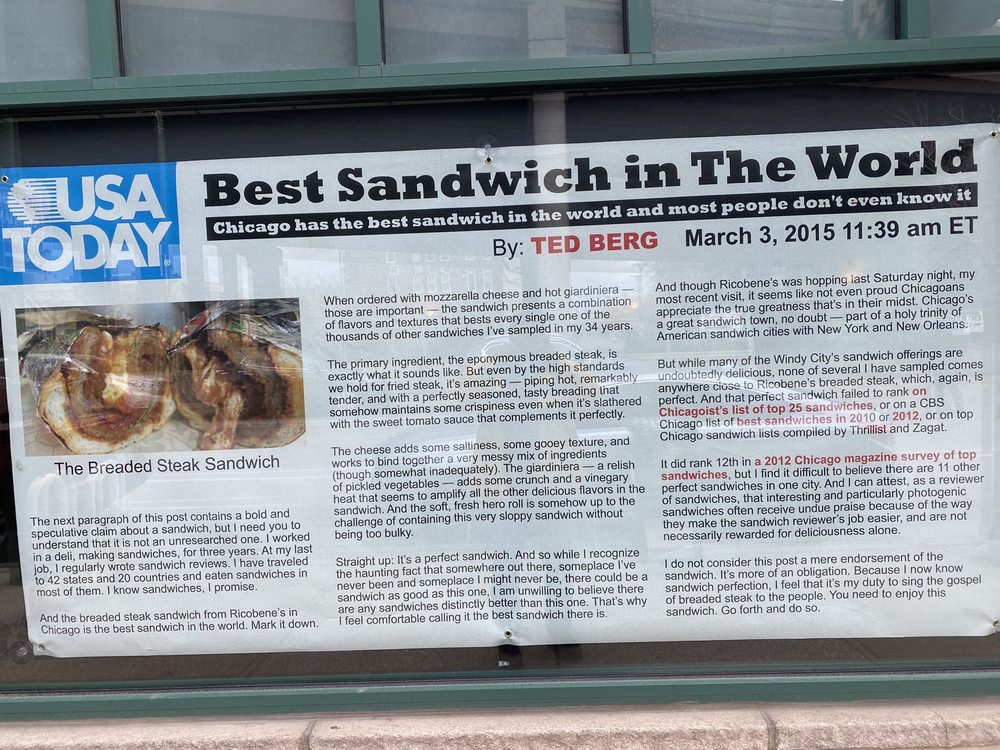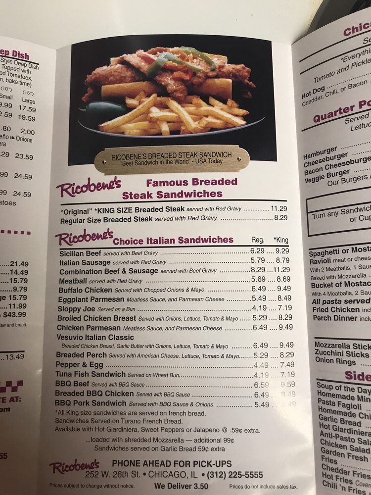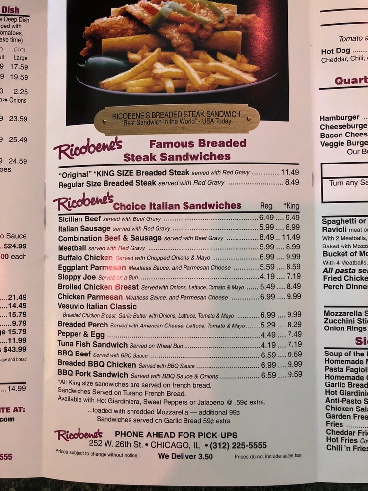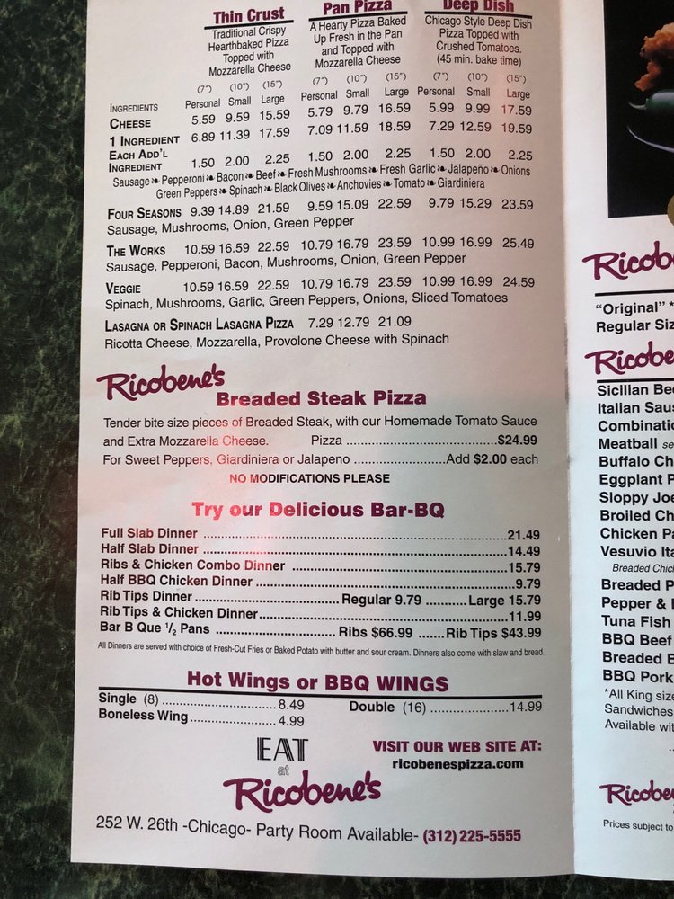 Ricobene's, located in Chicago, offers a variety of menu options including Thin Crust Pizza, Pan Pizza, and sandwiches like the chicken vesuvio and breaded steak. With a casual atmosphere and options for vegan and limited vegetarian diets, Ricobene's caters to a diverse crowd. Customers rave about the delicious ribs, cheese fries, and mouth-watering breaded steak sandwiches. The establishment also provides amenities like delivery, takeout, reservations, and catering services. Whether you're a local or a visitor, Ricobene's is a must-try spot for authentic Chicago classics. Don't miss out on their signature dishes and friendly service next time you're in the area.